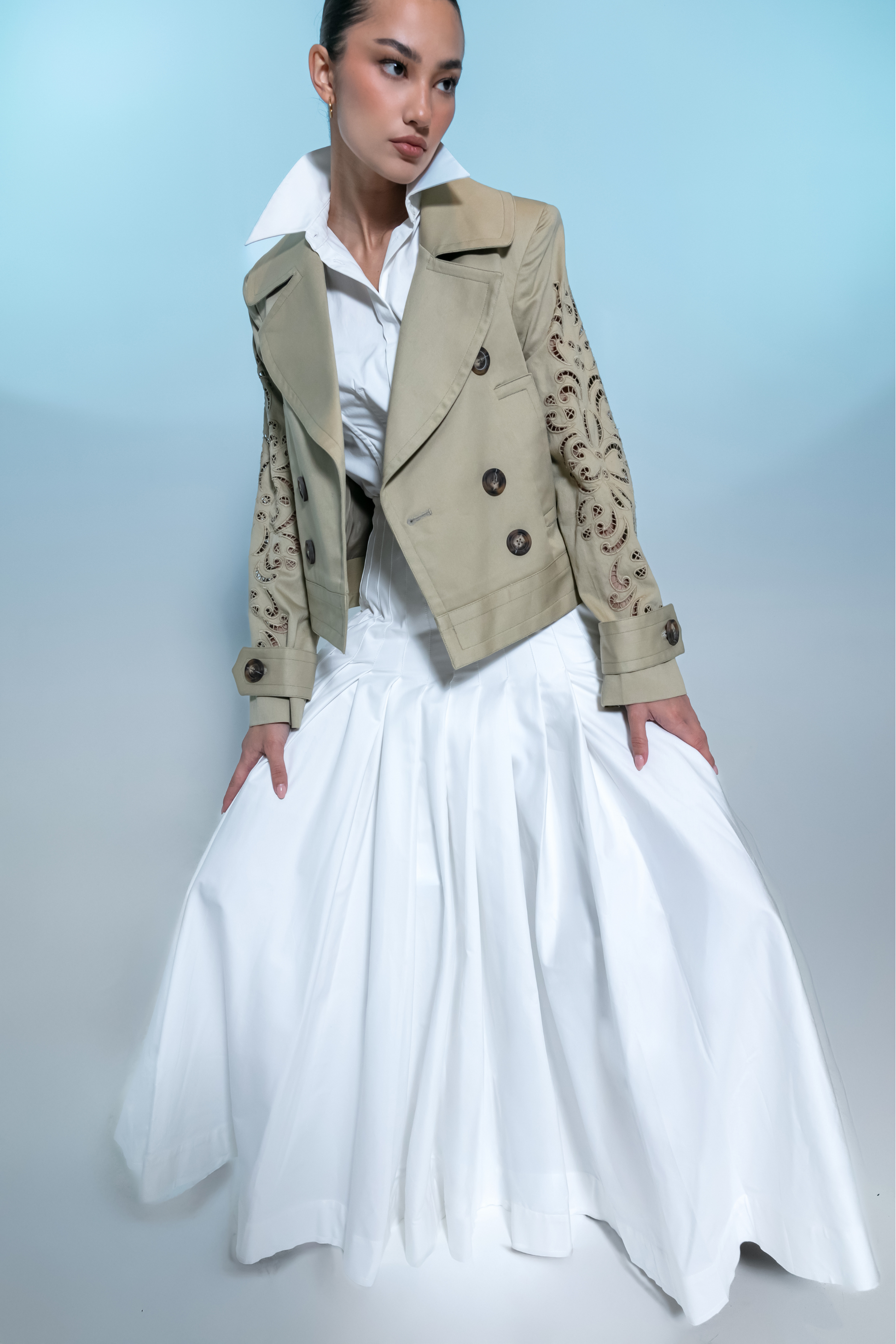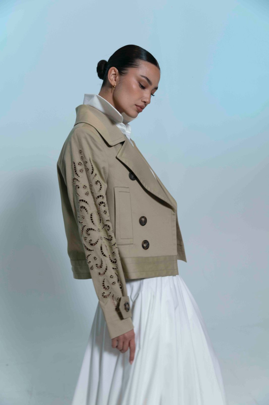 short embroidery trench coat